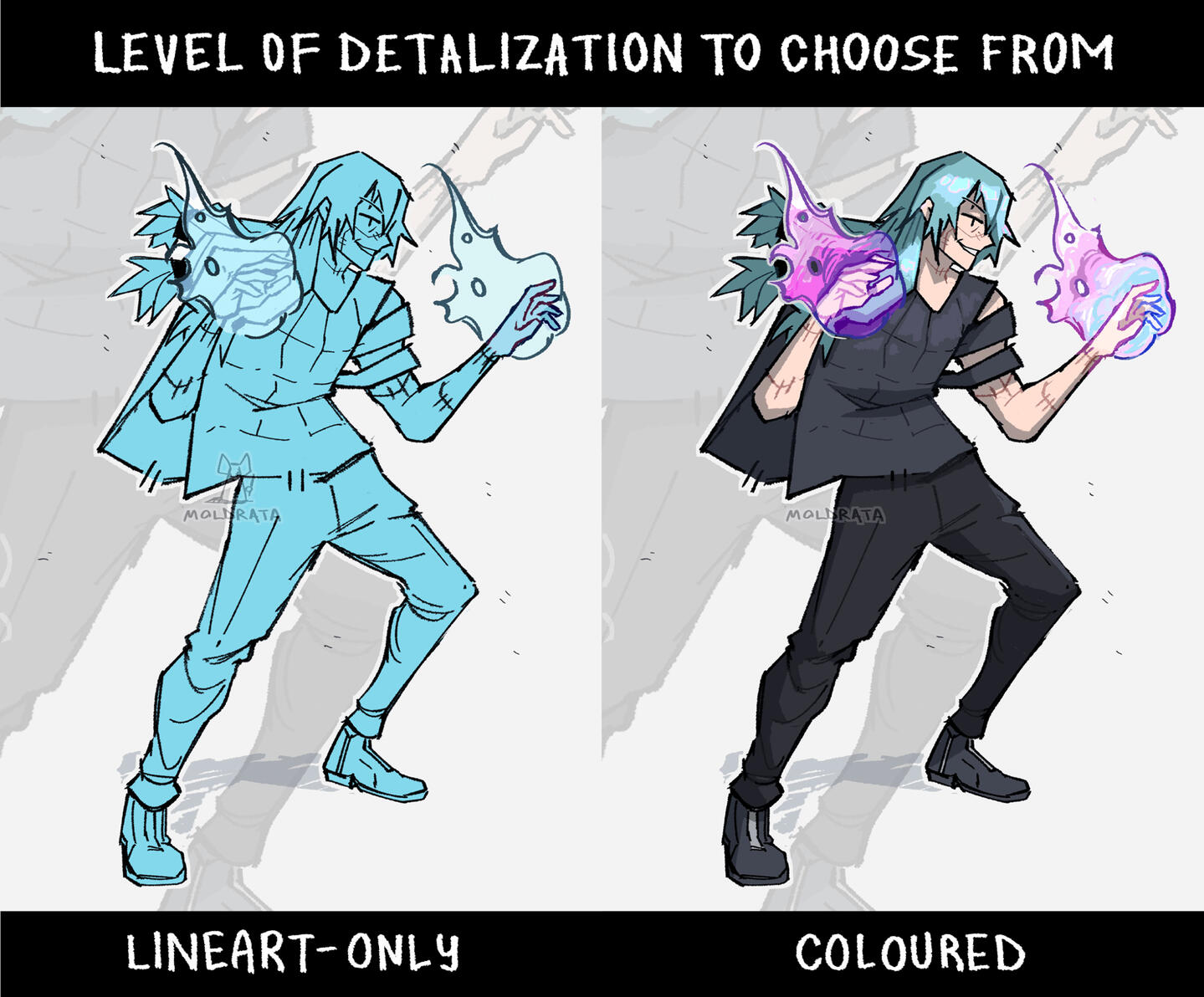 πColoured- 120$Character pack includes 1 headshot, 1 fullbody, 1 chibi drawings.